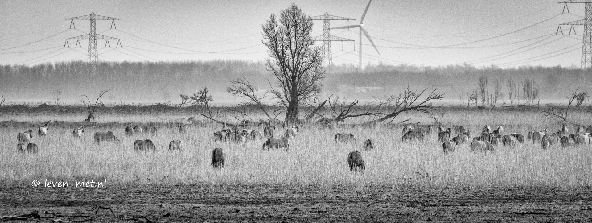 Maandag ochtend het is helaas weer grijs buiten en koud. Tja toch pak ik in de loop van de ochtend de elektrische fiets en ga ik eropuit. Ik ga even met de fiets een klein rondje maken bij de Oostvaardersplassen en het Oostvaardersbos. Via de fietsbrug aan het Koopvaarderspad kom ik het Oostvaardersplassen gebied in en kijk ik even bij het Jan van den Bosch uitkijkpunt. Op het kiekendief uitkijkpunt staan een paar edelherten lekker te grazen.