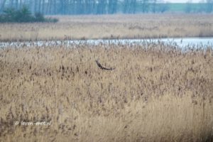 Bruine kiekendief boven het riet: