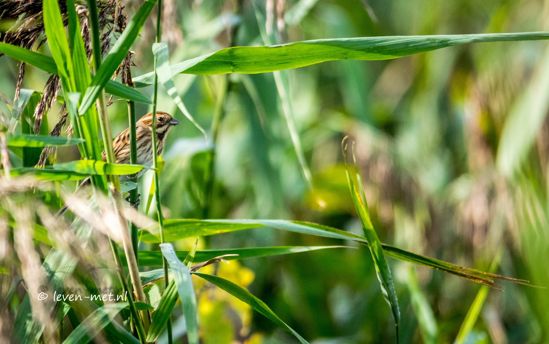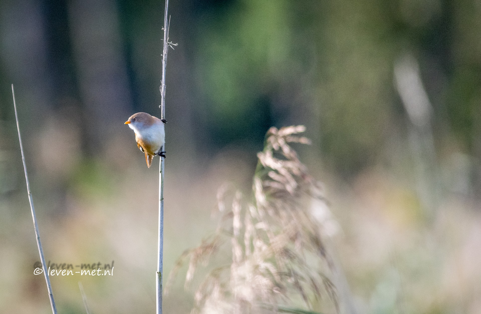 Het waait vandaag behoorlijk en de baardmannetjes zijn moeilijk te spotten, door de wind zitten ze diep in het riet. Maar er kruipt er toch een naar boven. Kip ik heb je, en een paar foto’s later schuift de baardvrouw in dit geval weer tussen het riet.