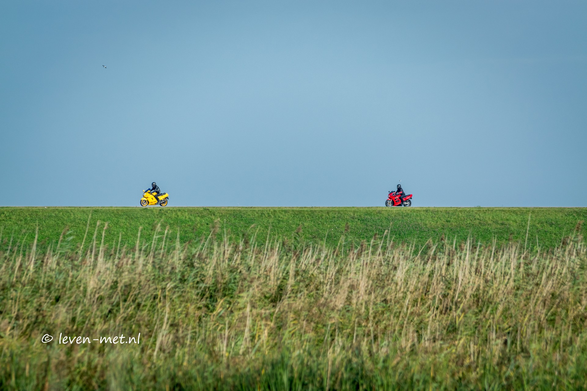 Een lekkere gans tegen je vizier en de motor rijden heeft nooit meer plezier. Dan licht hij of zij onder aan de Oostvaardersdijk of in het Markermeer en dan doe je niks meer. Bij het weggaan van het lepelaar uitkijkpunt laten nog even een paar rietgorzen van zich horen.