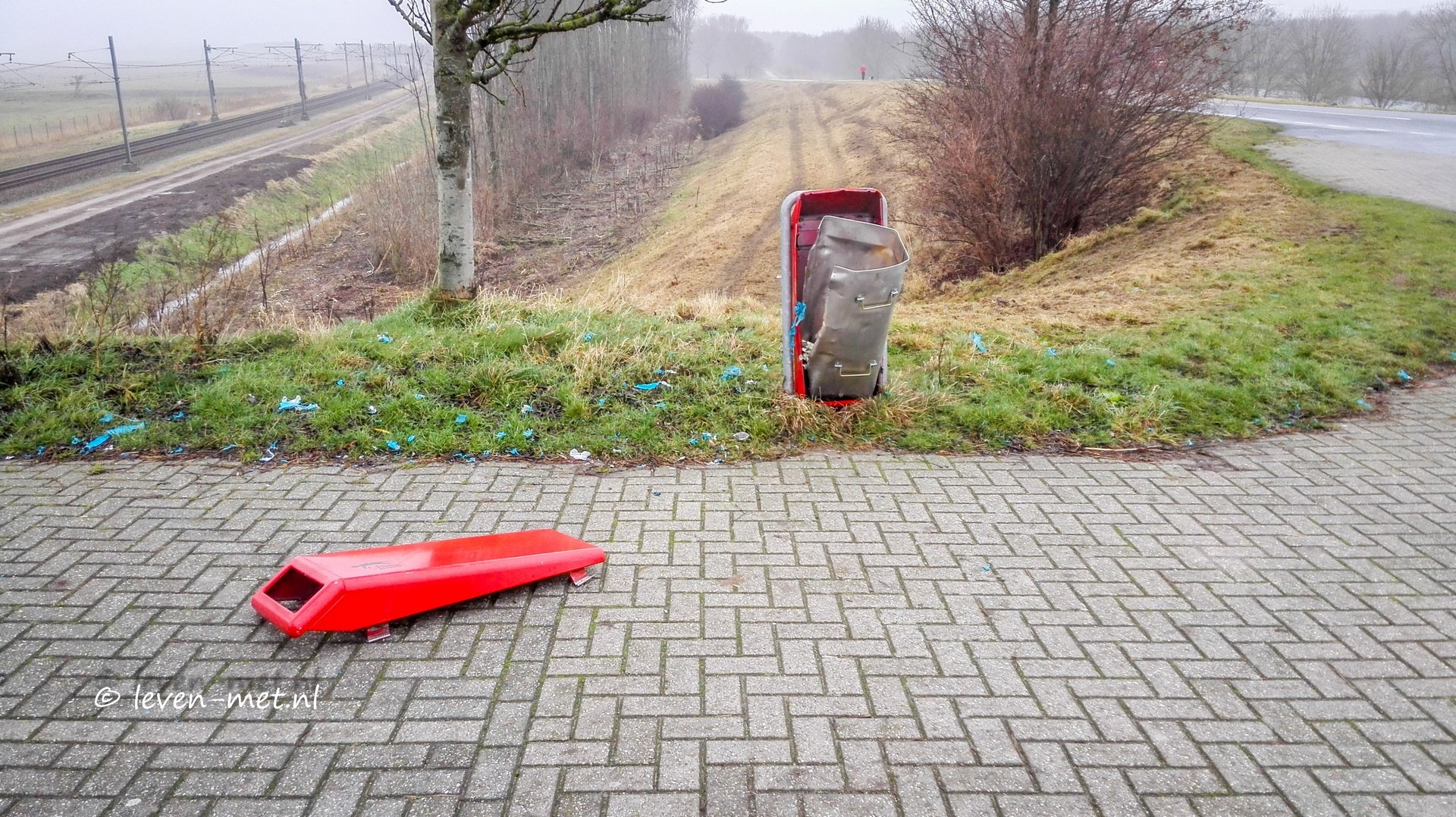 Na een paar minuten ga ik weer verder en draai nu de praamweg op en stop even bij de grote Praambult. En ja hoor hier zijn bijna alle vuilnisbakken opgeblazen met vuurwerk. Ik maak een aantal foto’s en stuur deze even door naar Bertwin de boswachter van Staatsbosbeheer. Ze kunnen het ook niet laten om de boel kapot te maken te triest voor woorden eigenlijk.