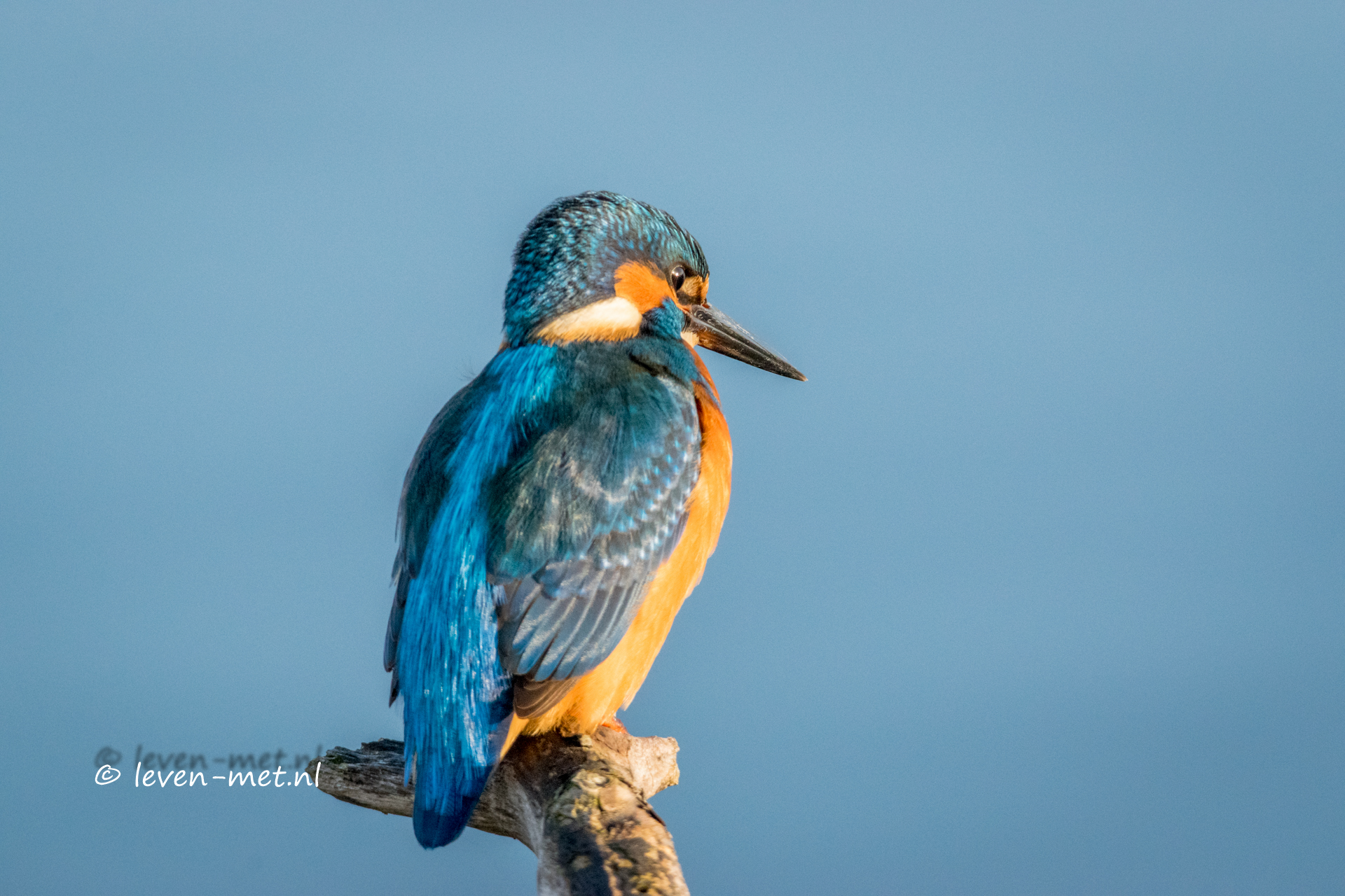Maar dan komt onze vaste Gardenavogel ( dank Cor voor de uitspraak) ook weer even langs. En we bedoelen natuurlijk de ijsvogel. Hij blijft niet lang en poseert maar even, dan is de ijsvogel weer vertrokken. Tja en hierna is het lang luidruchtig van de honderden misschien wel duizend tallen ganzen die binnen komen vliegen. Veel kolganzen vandaag.