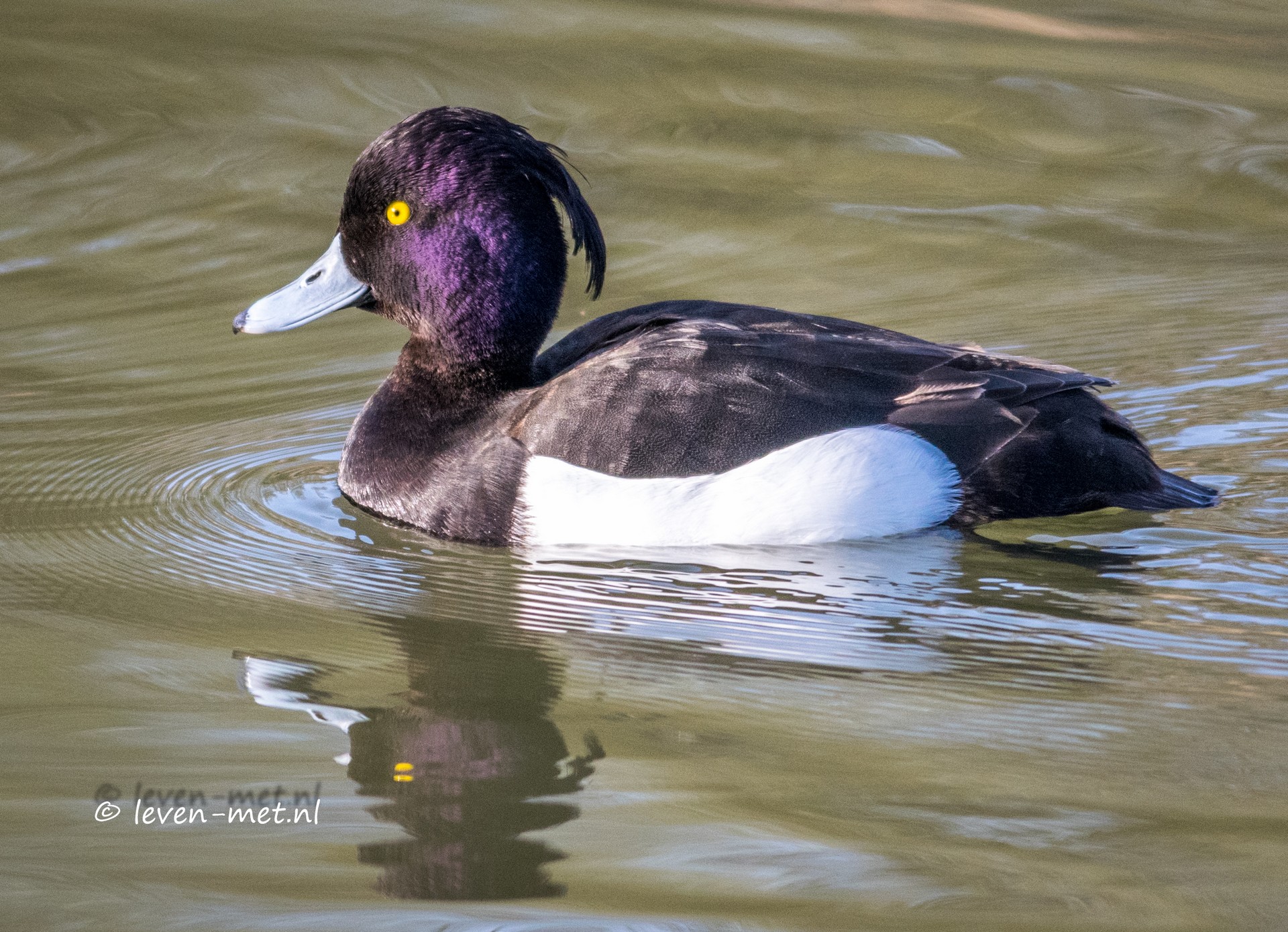 Er is een grote groep met kuifeenden bij de hut en door het licht kleurt hun koppie mooi op. Uiteraard alleen bij de mannetjes. Dan laat heel even een waterral zich zien en in twee seconden net een paar foto’s kunnen maken Ook de reigers zijn weer druk bezig. Maar als ik zo naar het eerste eilandje kijk wat op ongeveer 150 meter voor de hut ligt, zitten daar toch duidelijk minder reigers op dan het jaar hiervoor. De eilanden, er liggen er namelijk twee nog eentje achter de eerste. Ze zijn behoorlijk afgebrokkeld het afgelopen jaar. Ik ben ervan overtuigd dat als hier niet iets aan gedaan gaat worden dat we over een jaar of twee drie geen eilanden meer hebben. Dat houd ook in geen reigers aalscholvers en misschien  wel geen zeearend meer in foto bereik.