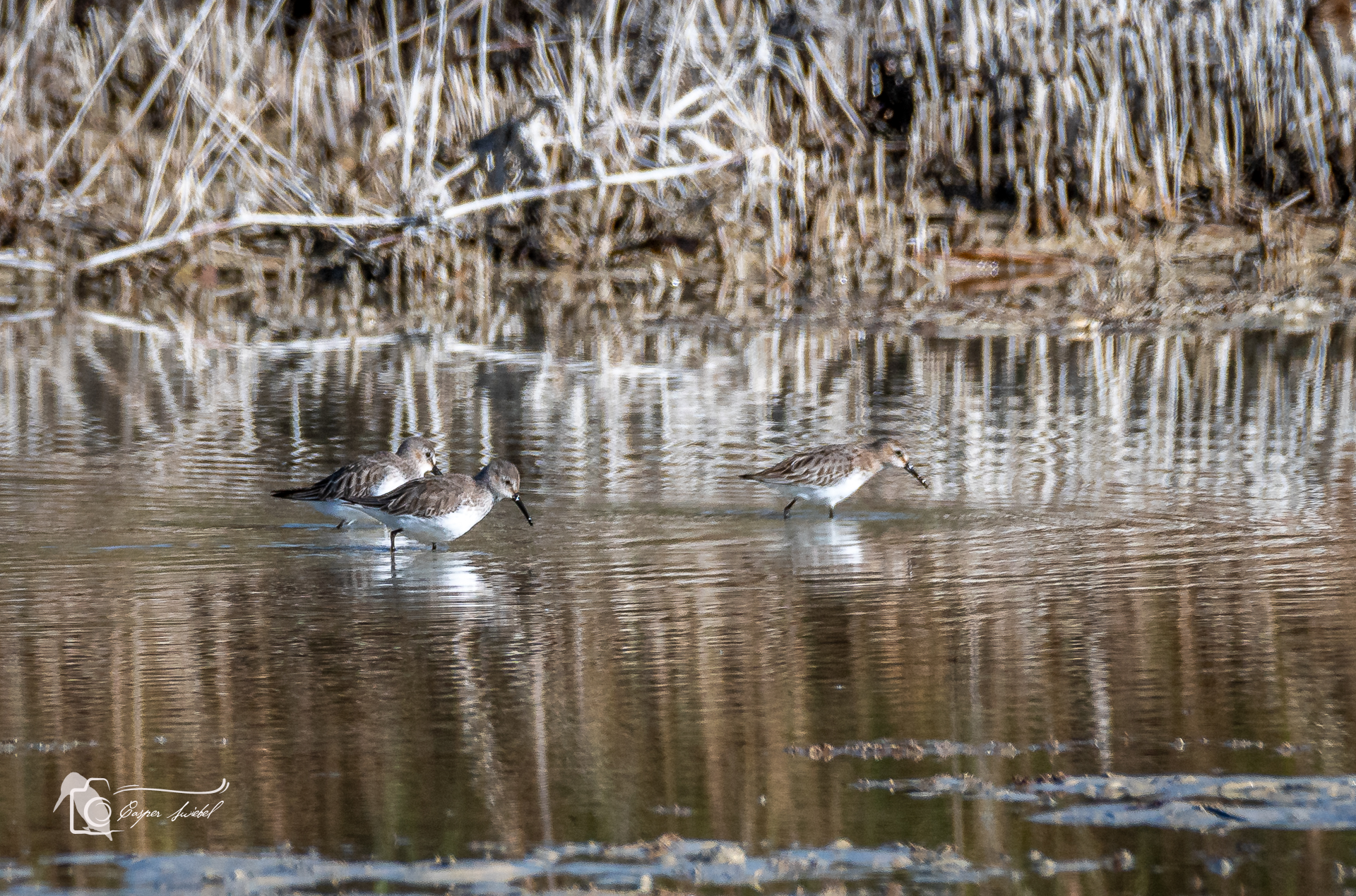 Ook op deze plek is er nog al wat water te kort maar we kunnen toch nog een aantal leuke soorten op de foto zetten. En voor het moeras is het een uitkomst natuurlijk. Een natuurlijke moeras reset is dus gaande. Maar goed de eerste drie bonte strandlopers komen voorbij scharrelen en die kunnen we mooi vast leggen.