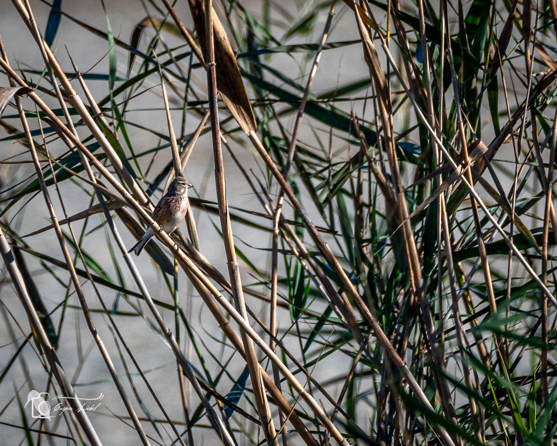 Er staan op deze plek twee kijk schermen en een klein observatie hutje, Super leuk om te zien. in de verte op de plas zien we nog een groepje bergeenden en in het riet vlakbij de hut nog een leuke kneu.