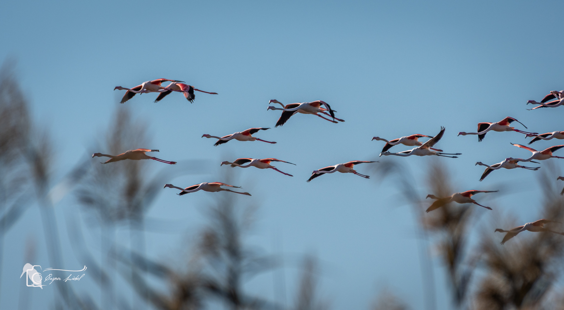 Komen er net twee flamingo’s over. snel de camera er bij en knallen maar.