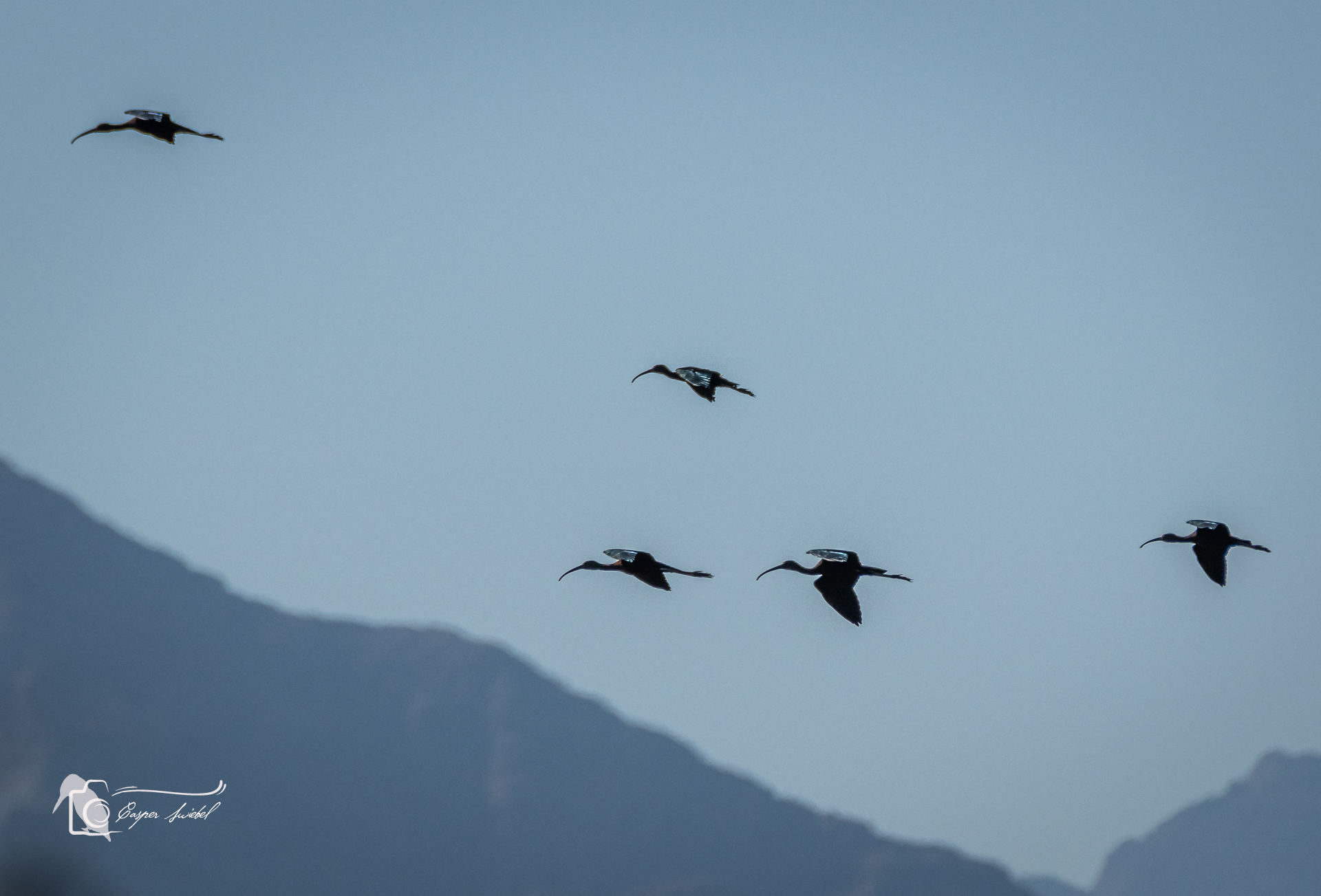 En tja dan ben je te laat om nog een foto te nemen. Of hij had al een heleboel steltkluut foto’s genomen dat zou ook kunnen. In de verte zie ik nog een groep zwarte ibissen aan komen. Voor een mooie foto eigenlijk te ver weg maar je wilt ze toch op de foto hebben.
