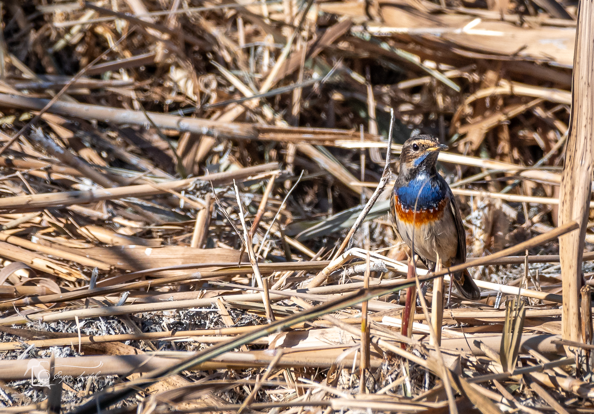 Wat kunnen ze zich toch goed verschuilen. En als afsluiting op deze plek een roodborsttapuit op de riet stengels.