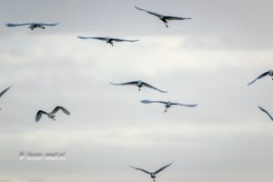 En dat lukt aardig. Ook de aalscholver komt zijn geluk beproeven. En ook dat gaat goed helaas is hij te snel om het op de foto te zetten. Een mooie gans komt nog even richting de hut vliegen en buigt gelukkig af. Was bijna botsing.