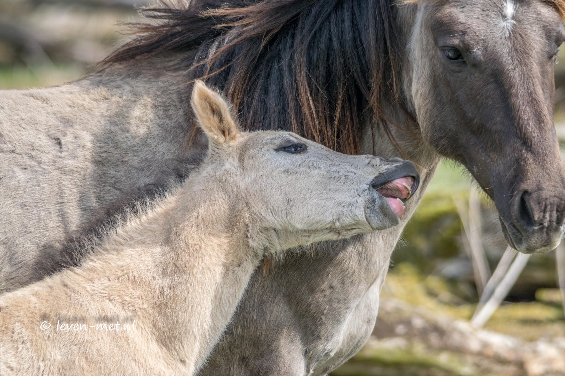 Nu in de zeearend hut het is rustig en ik maak een paar overzicht foto’s en neem zelf even wat te drinken. Na een kwartiertje getuurd te hebben over de vlakte ga ik weer verder ik stuit natuurlijk op de konikpaarden en een mooie kwikstaart. Ook de wilde bij is weer druk bezig om honing te maken. De kleine konik is lekker aan het klieren en stoeien bij mama.