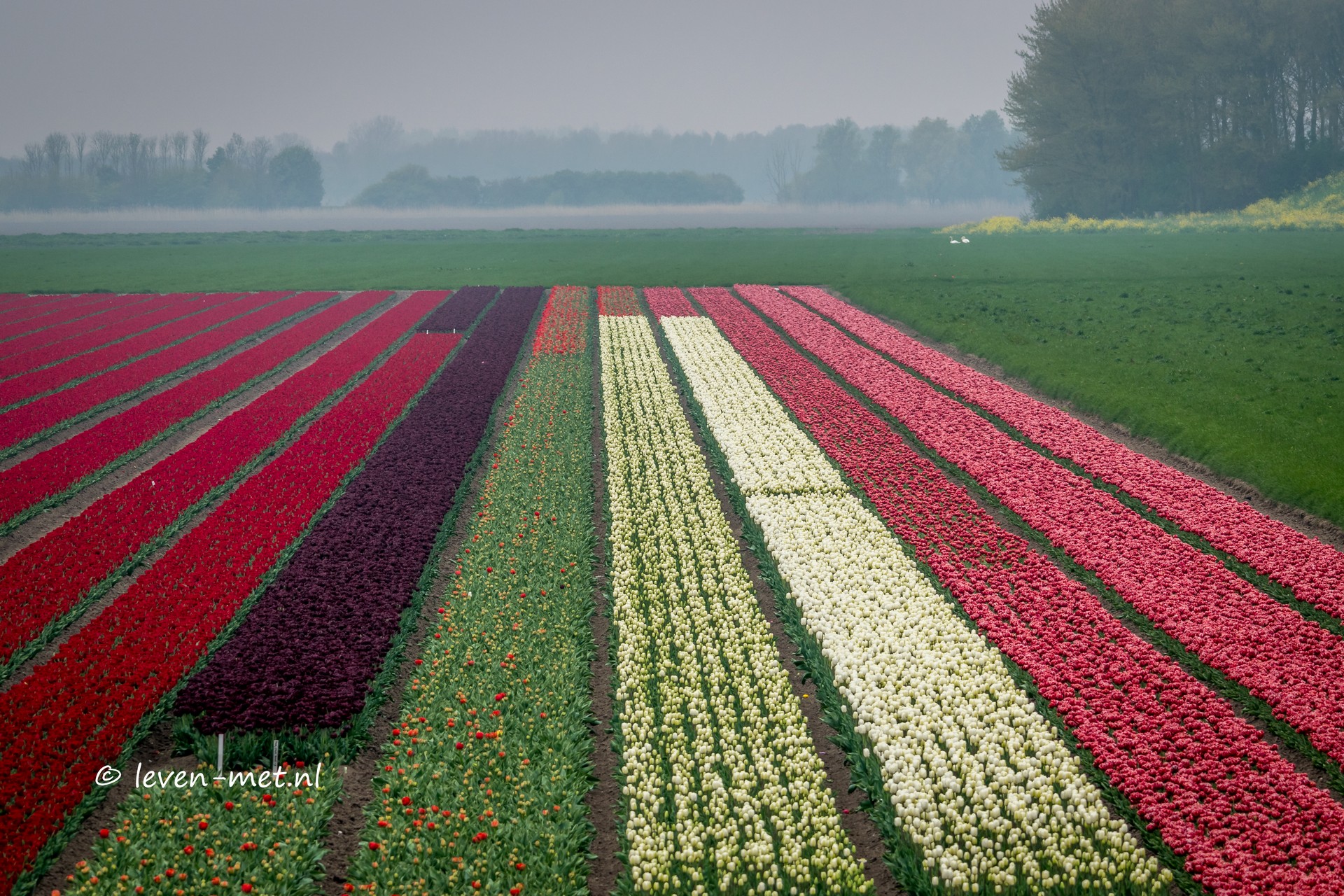Ook de ganzen pullen die hier rondom mij heen lopen zet ik even op de foto. Het is verder erg rustig en grijs. Ik ga lekker even een stukje fietsen en fiets naar het Kotterbos. Het grootste gedeelte van het Kotterbos is nog gesloten dus buig ik af naar de Kotterbosweg. Hier fiets ik naar de fietsbrug en ga over de lage vaart. Om zo over de trekweg te gaan en weer over de fietsbrug die over de A6 heen gaat. En zo sta ik dan in Zeewolde lijkt wel het drie plaatsen punt Almere, Lelystad & Zeewolde. Hier naast de snelweg de A6 liggen ook een aantal tulpen velden.