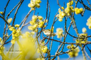 Oké dan nemen we de rechter route naar de grauwe gans hut. Ook geeft J-P aan dat er nog meer collega spotters van natuur waarnemers Flevoland op het pad van de grauwe gans zijn. Dit zijn Marjan, Jacobus en Rob. Misschien komen we ze nog tegen zeg ik. Eerst gaan we naar de bewuste boom. En inderdaad die staat mooi in bloei. Een mooie fitis wacht ons op bij de boom. De vlinders en de bijen smullen er ook heerlijk van.