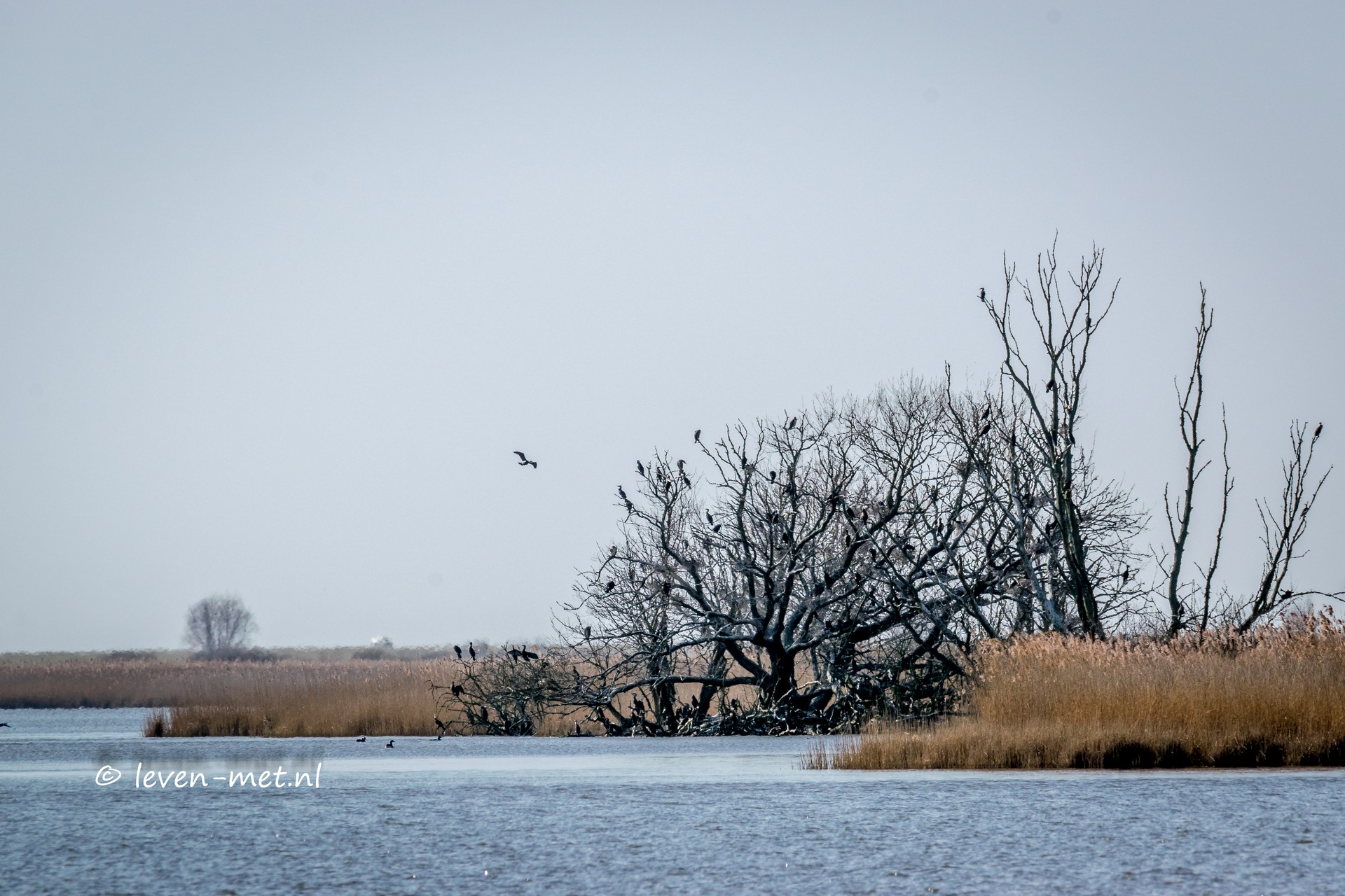 Woensdagmiddag, samen met de hulp-boswachter op stap. Na het middag eten en mijn middag medicatie stappen we in de auto en gaan we naar de Oostvaardersplassen en het pad van de grauwe gans. Het is best alweer een poosje geleden dat we hier geweest zijn. Via de Trekweg, Praamweg, en de Knardijk komen we op de bestemming. We parkeren de auto stappen uit en nemen de spullen mee. We lopen door het hek en op de T splitsing komen we J-P tegen de beheerder van natuur waarnemers Flevoland. We maken even een kort praatje en J-P geeft aan dat de boom links heel mooi in bloei staat.