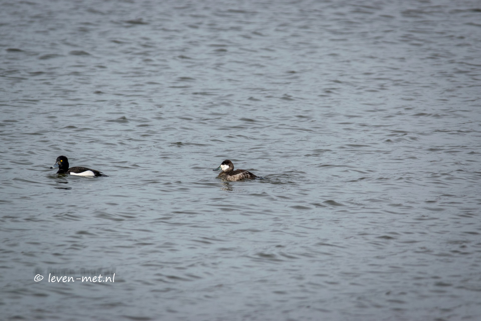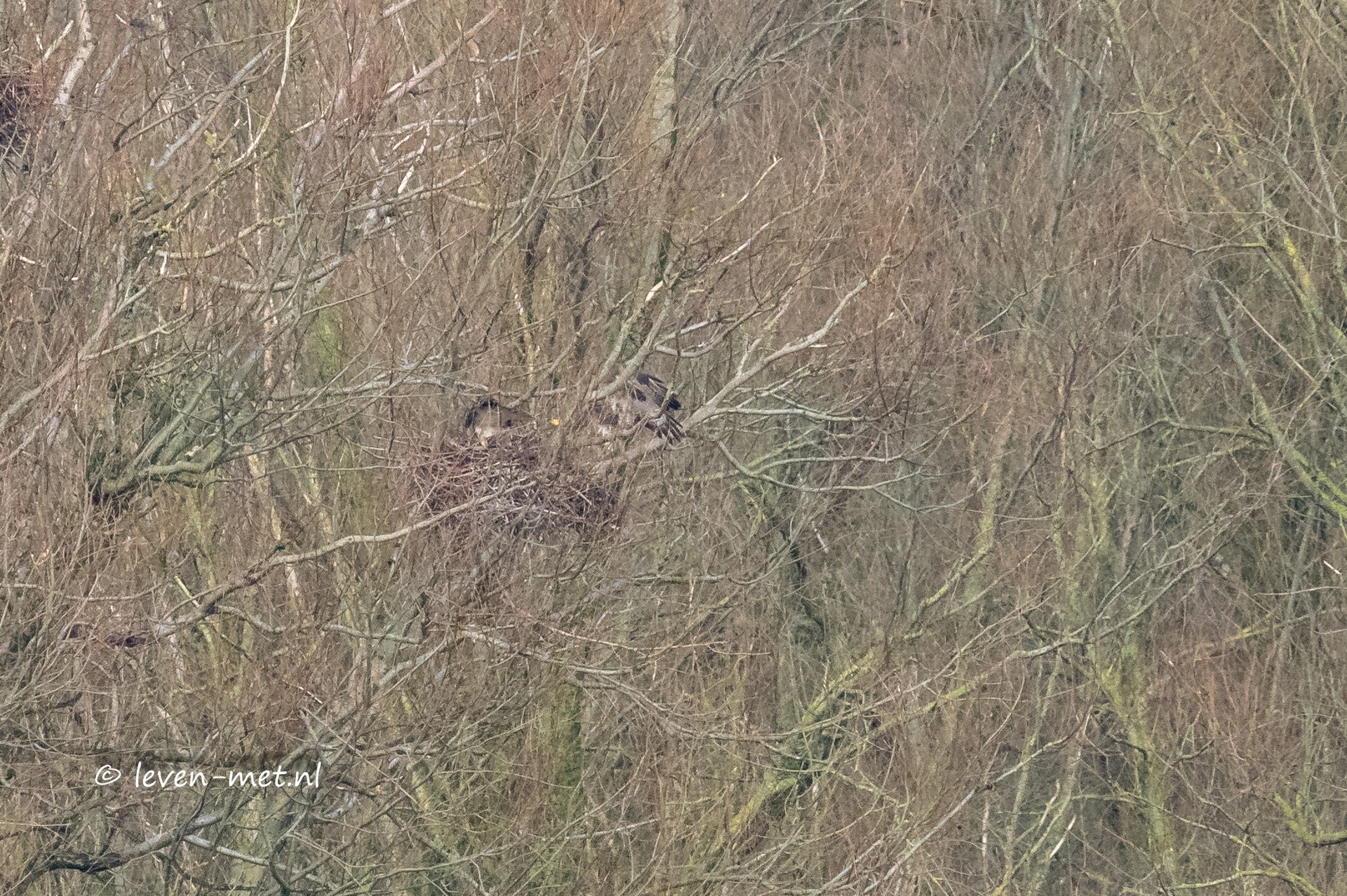 Na de spanning van de zeearend is het even uitblazen met een heerlijke kuifeend. Die af en toe op zijn eigen trompet stoom afblaast. Een paar buizerds komen ook even aangevlogen en zijn een beetje aan het dollen met elkaar (balts gedrag). Ze gebruiken even een aalscholvernest om een snelle wop (Wippen Ontbijten Pleite) te maken.