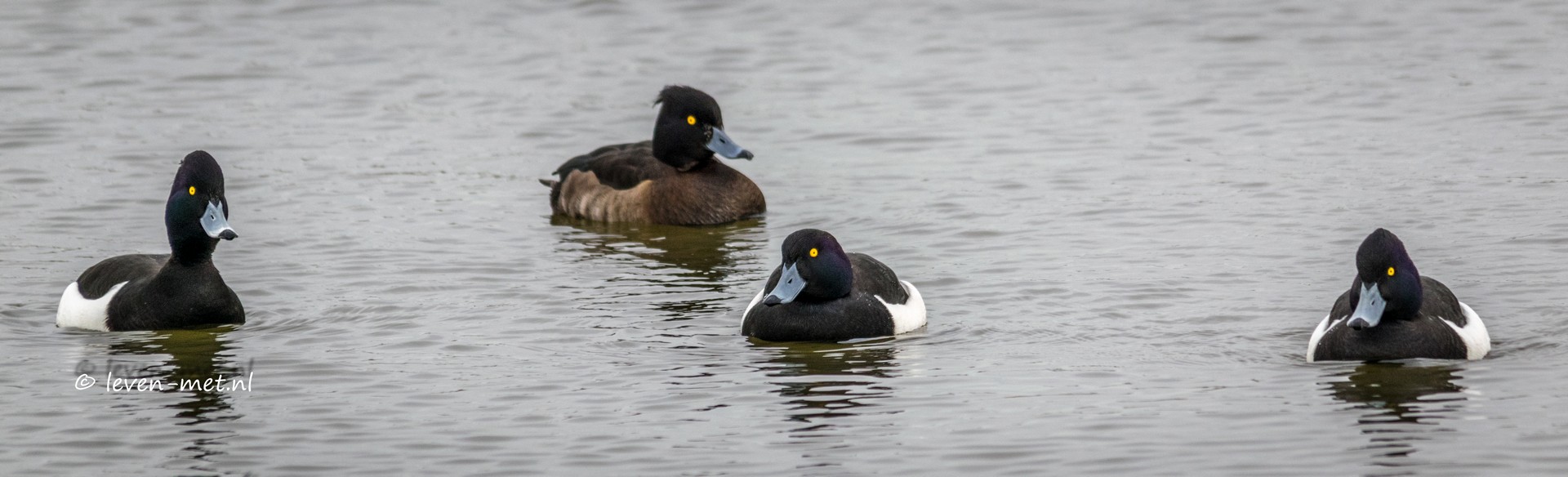 Kunnen we vandaag niet even rusten ben fuut moe man. Natuurlijk wordt ook moeder kuifeend nog opgejaagd aangezien het paar de ruimte nodig heeft om te dansen. Er komt gezellig een groepje kuifeenden bij de hut. Daar maak ik nog wat plaatjes van natuurlijk.