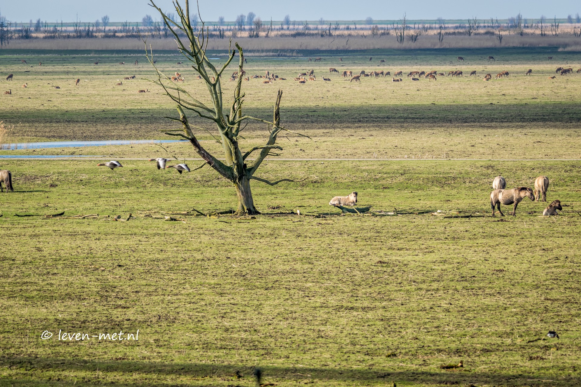 Woensdag middag ga ik samen met de hulp-boswachter op stap. Na het middag eten en mijn medicatie pakken we de spullen bij elkaar en gaan we op stap. We rijden naar het Oostvaardersveld en kijken daar wel even waar we naar toe gaan. Via de trekweg en de praamweg komen we eerst bij de grote Praambult uit. Hier stoppen we dan ook even en stappen we even uit.