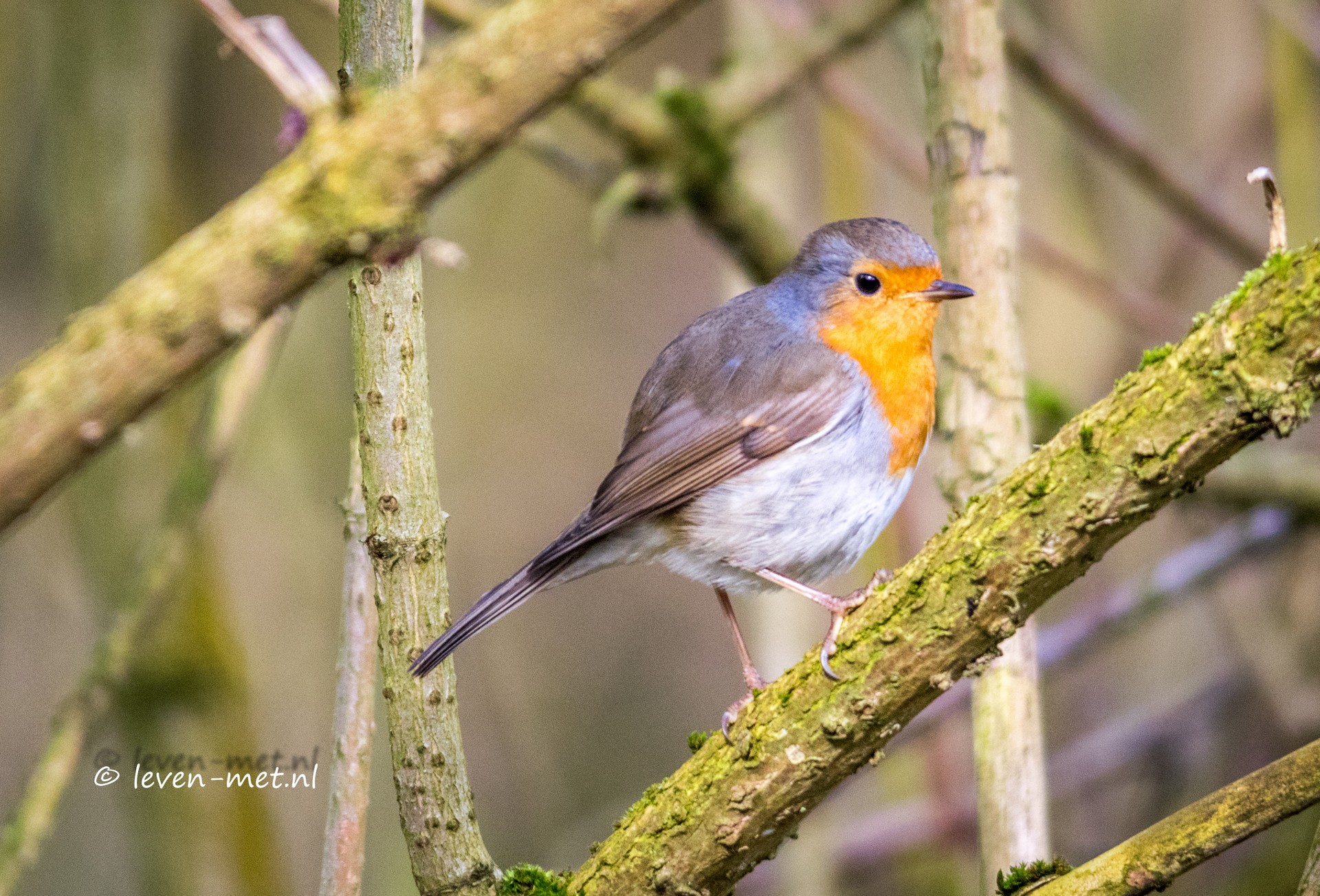 Snel raam naar benden en klikken maar. Gelukt zegt de hulp-boswachter inderdaad kanjer we hebben de sperwer op de foto. Ook zet ik nog even een persoon op de foto die tussen de konikpaarden probeert te komen voor de beste foto. Als zo vaak is dit dus niet de bedoeling. We rijden weer terug naar de poelruiterhut. J-P komt net terug lopen van de oeverloperhut en blijft even op ons wachten. Ik sein even dat we er aan komen ik zit net met de boswachters aan de telefoon. Aangezien er iemand in het Oostvaardersveld loopt die daar niet mag lopen. Leo laat zo iemand even een extra ronde maken door het Oostvaardersveld. Ik bedank Leo en we stappen uit. Nu gaan we lekker met de hulp-boswachter naar de Poelruiterhut. J-P loopt ook gelijk mee en vraagt of het nog gelukt is met de sperwer ja geef ik aan het is goed gelukt. Onderweg stoppen we nog even een paar keer voor de vogeltjes die we horen fluiten. De vogels laten zich goed horen maar niet zien. Behalve het roodborstje.