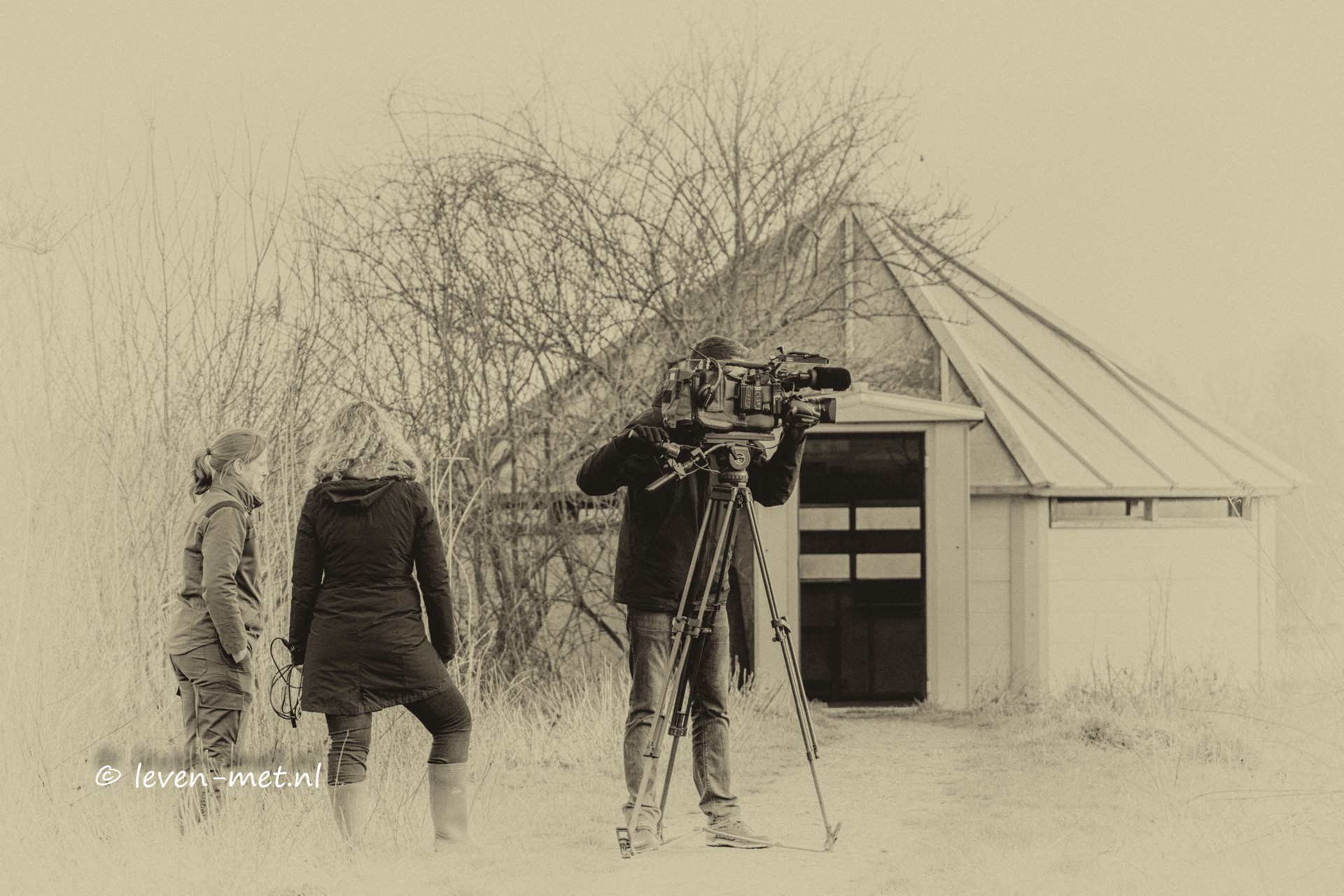 Hier en daar wordt nog even gekletst en laat ik nog even de foto’s van de ochtend zien aan de cameraman, uiteraard wordt dit ook nog even gefilmd. En zo zit de ochtend met het interview er dan op en gaat het team van Omroep Flevoland weer op pad. Ook boswachter Mikal gaat weer verder met haar andere verplichtingen en zegt ons gedag. We blijven nog even na praten en kijken nog even naar buiten of we wat kunnen spotten. Een paar brandganzen komen nog even aan de overkant voorbij.