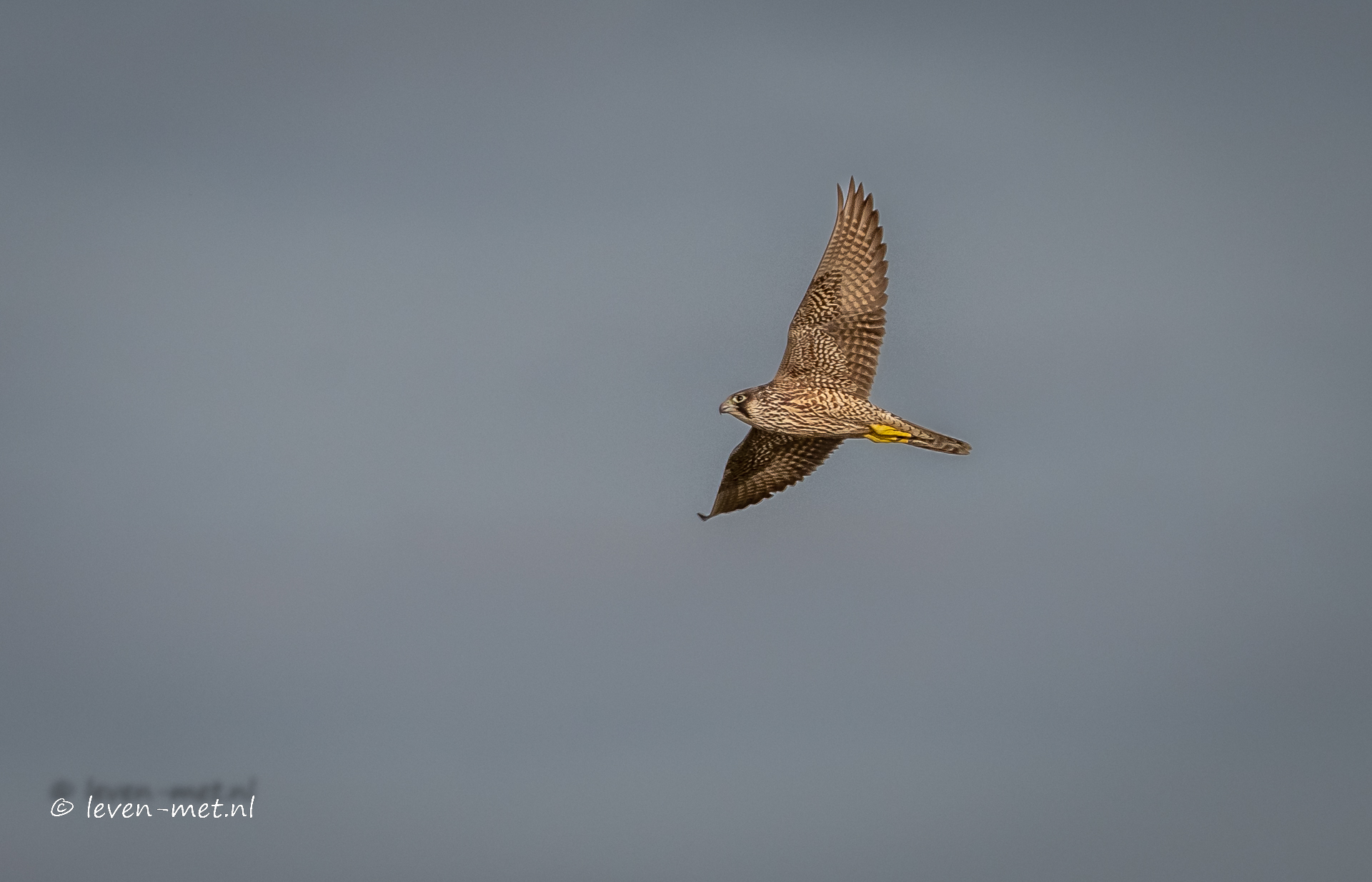 Dan flitst er een slechtvalk voorbij, ik pak heel snel de camera en kan zo de slechtvalk als nog heel mooi op de foto zetten.