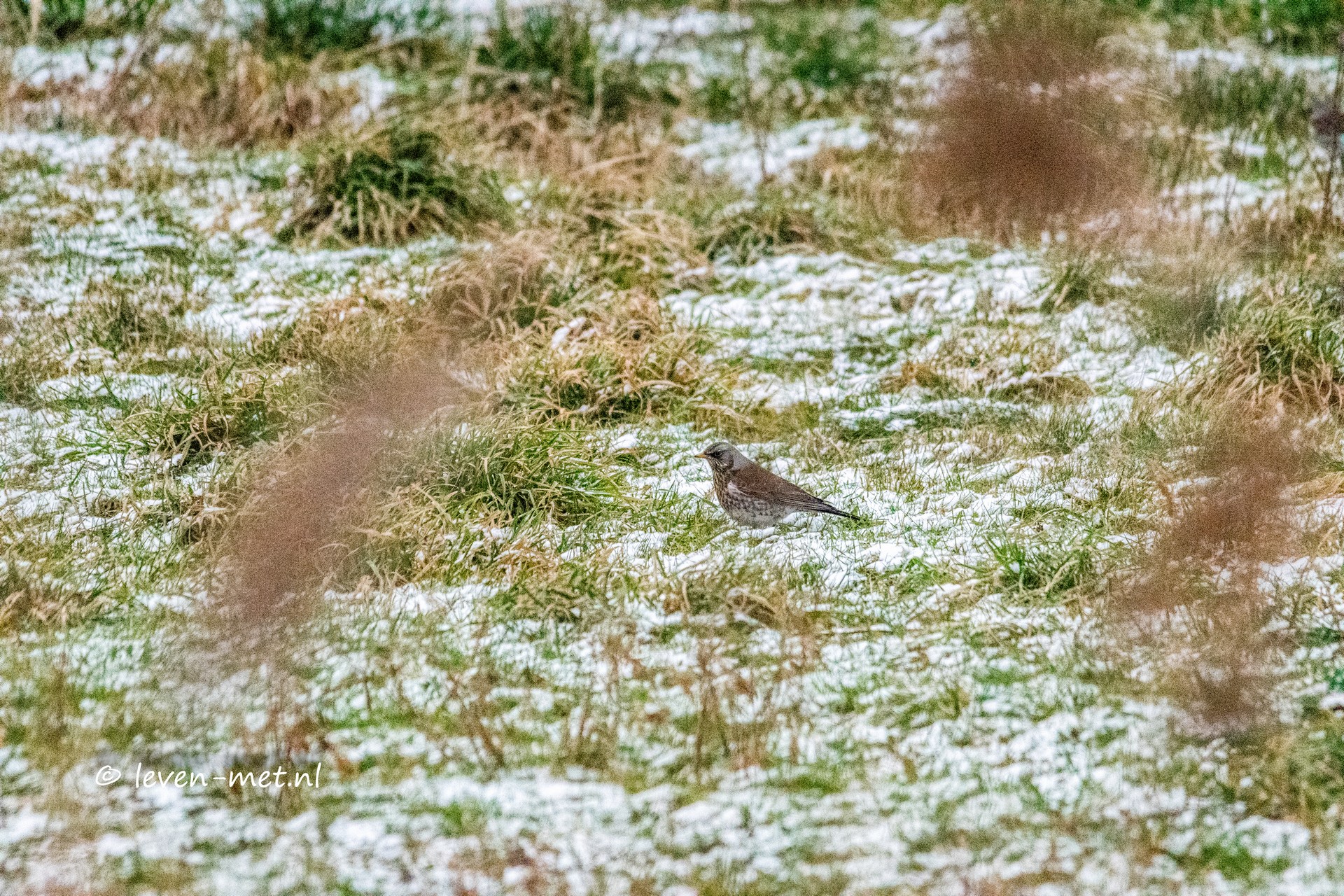 Donderdag ochtend tijd om op pad te gaan. Ik pak mijn spullen bij elkaar en breng eerst even de hulp-boswachter naar school. Nu lekker in de warme auto onderweg naar het Oostvaardersveld. Ik ga via de trekweg en zoals vaak zit ik achter de vrachtwagens die baggerspecie komen brengen en storten in de Vaartplas. Deze jongens rijden af en aan met bagger uit de Almerse en Lelystadse sloten en vaarten en komen dat hier brengen. Dit doen ze nu al een paar maanden. Ik kan weer verder rijden en om de hoek staat een gigantische kraan en er staan allemaal vrachtwagens achter elkaar. Met als lading allemaal drijfpontons. Dan zullen ze vast nog een los plek maken voor de vrachtwagens en trekkers die de baggerspecie komen brengen. Nu eerst verder naar het Oostvaardersveld. Even verder langs de trekweg in het open veld zie ik wat kramsvogels scharrelen die probeer ik even op de geheugenkaart te zetten.