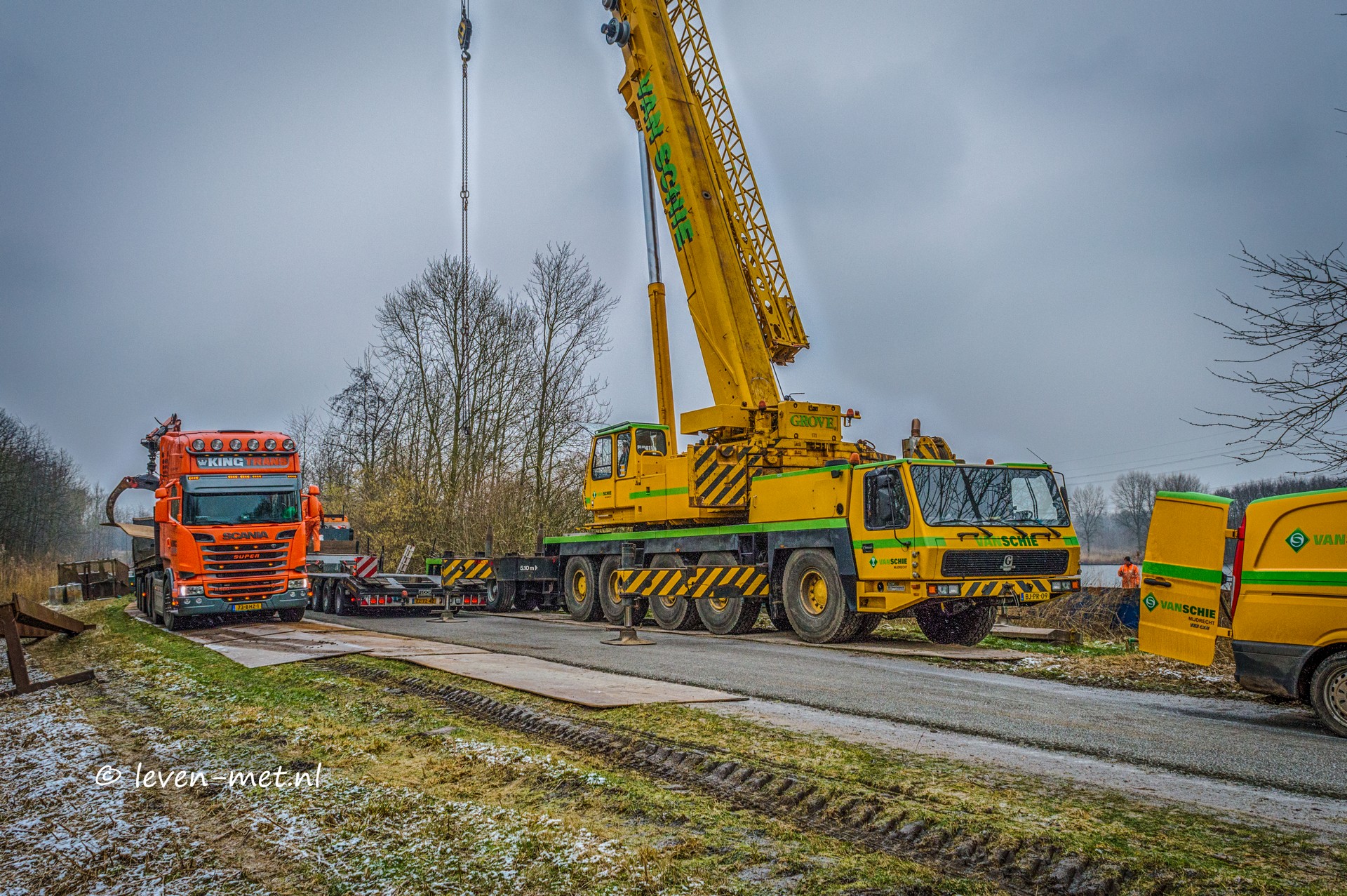 Nu wordt het dan tijd om naar huis te gaan de accu is echt leeg. De praamweg zeg ik weer gedag en ik zit weer op de trekweg. En oh ja die grote kraan en vrachtwagens staan er nog. Ik moet dan ook even een kwartiertje wachten voor ik er langs kan. Dat geeft mooi even de gelegenheid om het op de foto te zetten en even stiekem wat dingen te vragen.