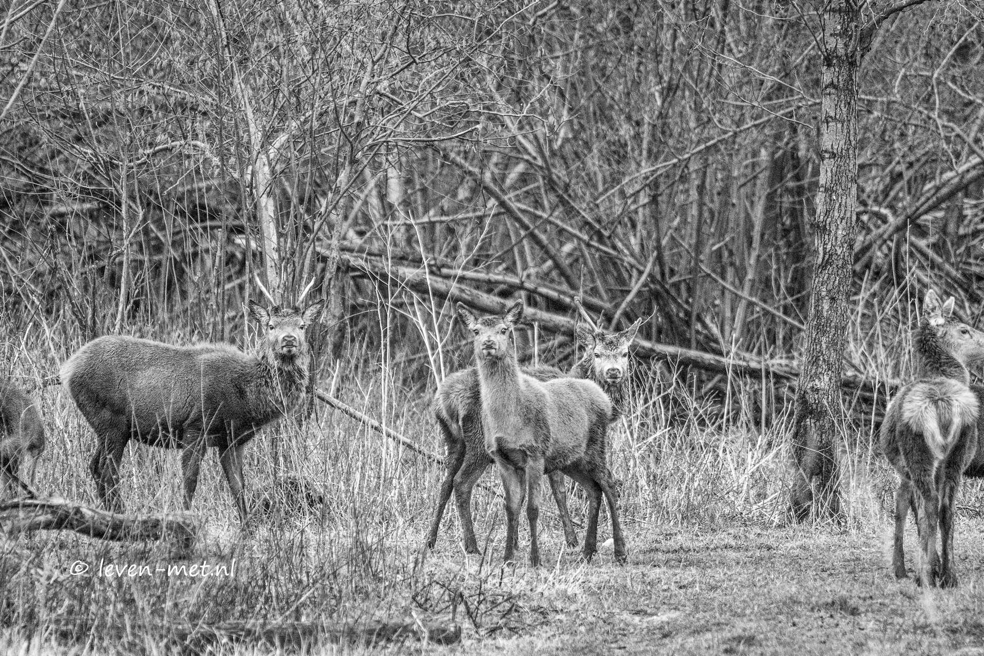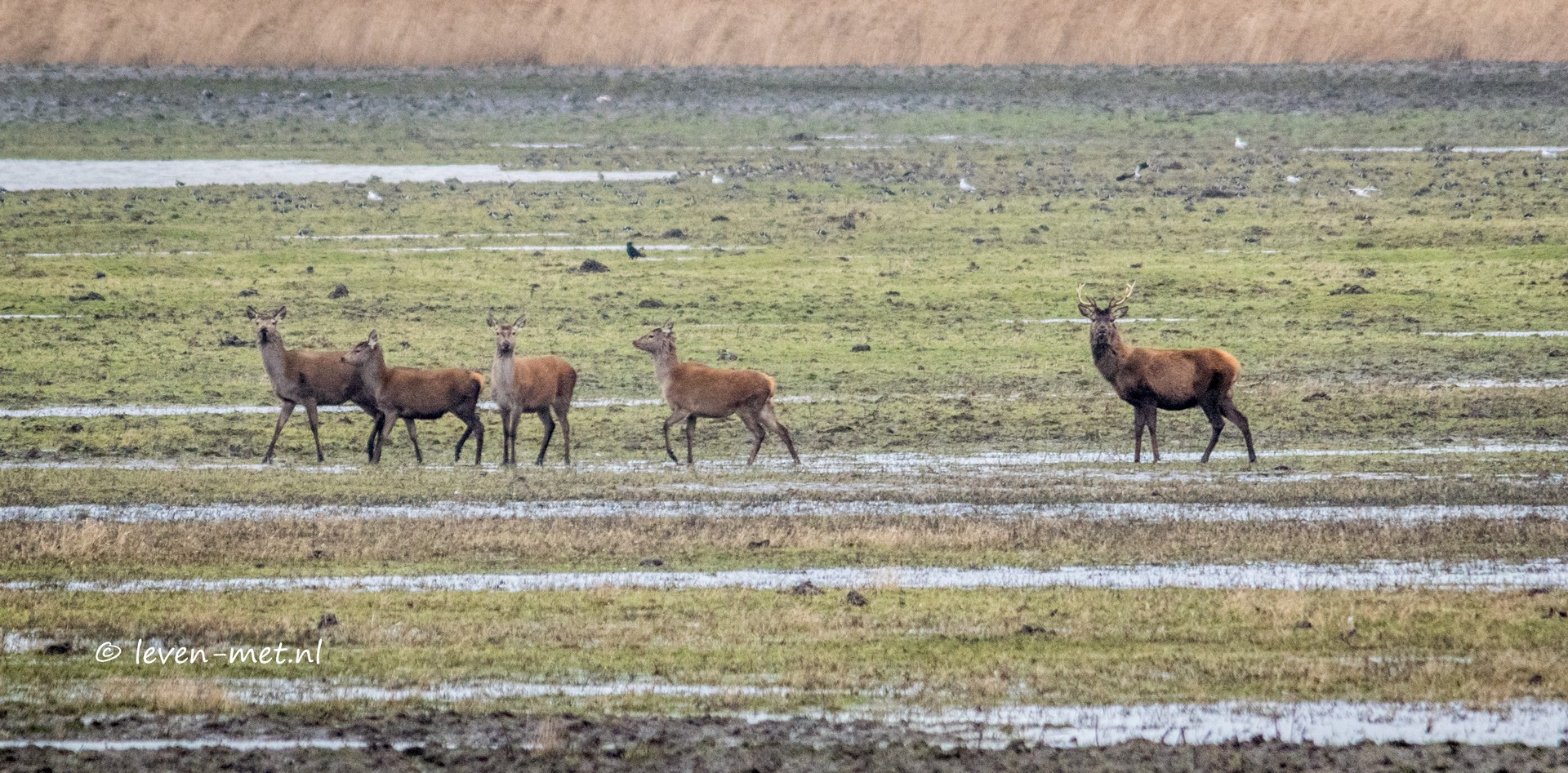 En daar staan de dames en heren. Even een paar klikjes en dan weer naar de fiets. Ook nog even een groot hert op de foto zetten en alleen zijn kop en gewei zijn net zichtbaar boven het riet. Bedankt weer voor het lezen en kijken.